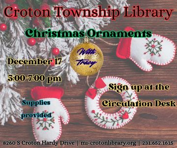 5:00 pm Regular business meeting of the Croton Township Library Board.