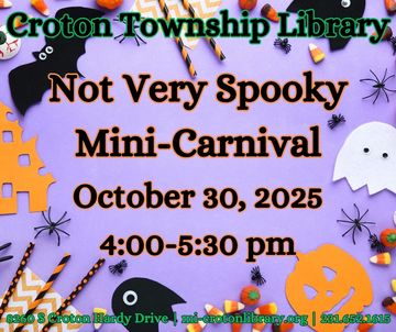 4:00-5:30 pm We had so much fun last year, we decided to bring back our mini-carnival with fun games and prizes. Let's get not-so spooky.