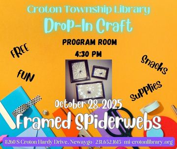 4:30 pm Spooky Season is our favorite time to craft! Join us for a Halloween inspired craft time. Supplies and snacks are provided.